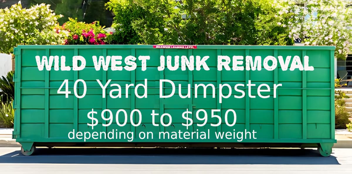 For dumpster rentals, we offer 40-yard dumpsters only. Pricing is typically $900 to $950 depending
